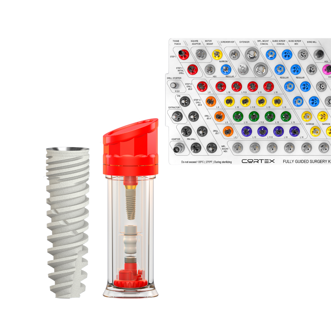 Están diseñados para ofrecer máxima estabilidad primaria y precisión quirúrgica en procedimientos de implantología dental. Su rosca larga, estrecha y afilada permite una penetración eficiente en el hueso, facilitando un corte preciso y controlado durante la colocación del implante. Una de las principales ventajas de los implantes Cortex Dynamix es la posibilidad de modificar el ángulo de penetración durante la implantación, lo que resulta especialmente útil cuando la perforación previa no ha sido realizada de forma óptima. Esta característica brinda al profesional mayor flexibilidad clínica, mejorando la colocación del implante y optimizando los resultados finales.
