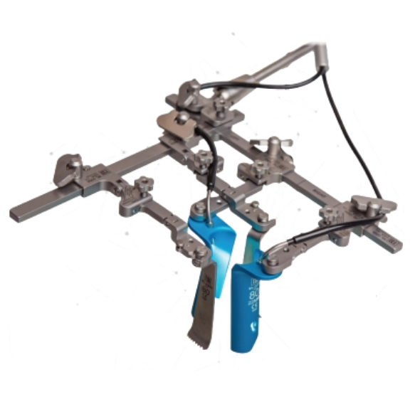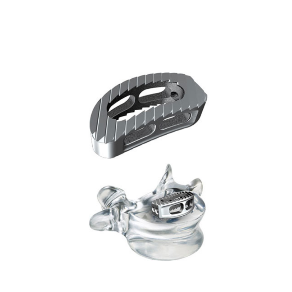 IntraSPINE – Sistema de estabilización dinámico respetuoso del eje de rotación del segmento. Su soporte laminar cerca del eje de rotación permite descompresión y una corrección de la lordosis mejor que otros dispositivos posteriores. Producido francés.